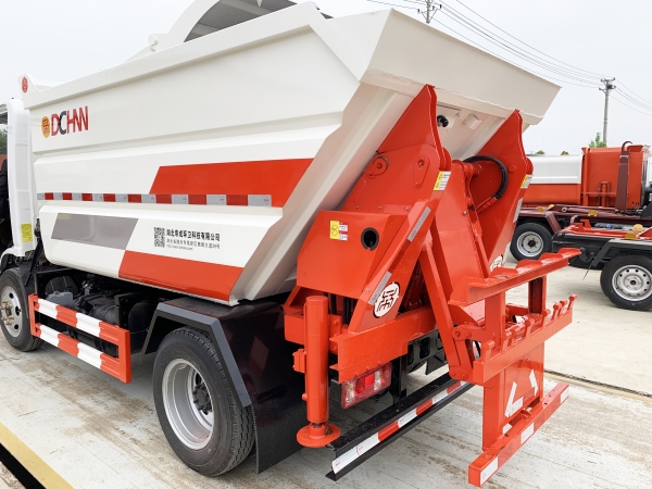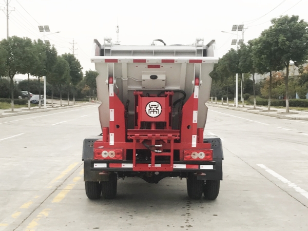 自裝卸式垃圾車在底盤的基礎(chǔ)上,加裝垃圾箱體、連接附件、防護(hù)欄及液壓系統(tǒng)等裝置。具有操作安全、使用性能穩(wěn)定、返修率低、售后服務(wù)及時(shí)周到等特點(diǎn)。本產(chǎn)品主要用于收集與轉(zhuǎn)運(yùn)城市住宅小區(qū)、鄉(xiāng)鎮(zhèn)街道等產(chǎn)生的生活垃圾。整車小巧靈活,行動(dòng)方便,適應(yīng)人流密集的商業(yè)區(qū)域和道路交通情況較差的城鄉(xiāng)地區(qū)。本車配有后掛桶進(jìn)料機(jī)構(gòu),在翻桶處操作,可與120L/240L/660L標(biāo)準(zhǔn)塑料桶對(duì)接。整車具有自卸功能,卸料方便。結(jié)構(gòu)結(jié)實(shí)耐腐 船型箱體結(jié)構(gòu)實(shí)現(xiàn)100%無泄漏;刮板進(jìn)料+壓縮 壓縮效率高;高位舉升自卸結(jié)構(gòu),卸料干凈 對(duì)接方便;多功能翻桶進(jìn)料機(jī)構(gòu) 進(jìn)料快捷穩(wěn)定;液壓系統(tǒng)穩(wěn)定可靠;自動(dòng)化程度高,電液聯(lián)合控制。