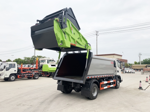 壓縮式垃圾車由密封式垃圾廂、液壓系統(tǒng)、操作系統(tǒng)組成。整車為全密封型,自行壓縮、自行傾倒、壓縮過程中的污水全部進入污水廂,較為徹底的解決了垃圾運輸過程中的二次污染的問題,避免了給人們帶來不便,關(guān)鍵部件采用進口部件,具有壓力大、密封性好、操作方便、安全等優(yōu)點。 可選配后掛桶翻轉(zhuǎn)機構(gòu)或垃圾斗翻轉(zhuǎn)機構(gòu)。 專門用于收集城鎮(zhèn)居民生活垃圾和其他可壓縮垃圾的的環(huán)衛(wèi)專用車輛,壓縮式垃圾車由密封式垃圾箱、液壓系統(tǒng)、操作系統(tǒng)組成。整車為全密封型,自行壓縮、自行傾倒、壓縮過程中的污水全部進入污水箱,較為徹底的解決了垃圾運輸過程中的二次污染的問題,關(guān)鍵元器件采用進口件,具有壓力大、密封性好、操作方便、安全省力等優(yōu)點。 主要有后裝壓縮式垃圾車和測裝壓縮式垃圾車,其中后裝壓縮式垃圾車可選配后掛桶收集裝置、鏟斗收集裝置、擺臂收集裝置、掛鐵通收集裝置,用戶可以根據(jù)不同需要選擇不同的收集裝置。